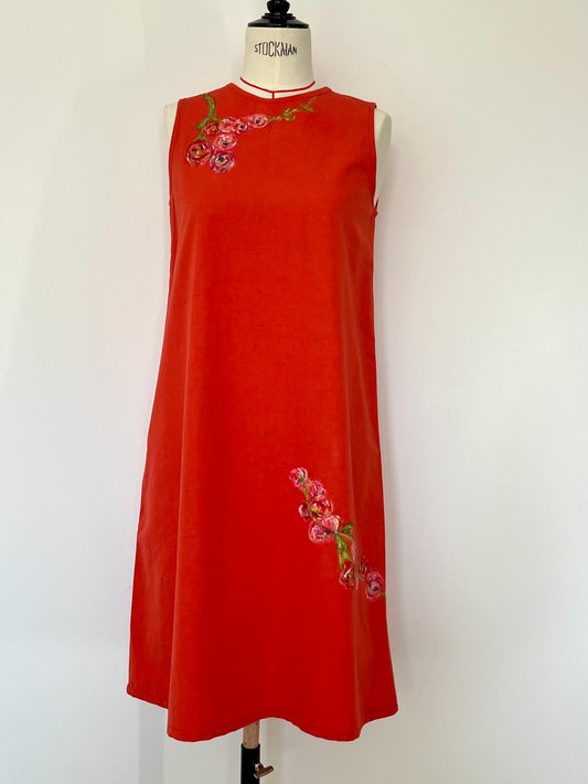 Scarlet Bloom Hand Painted Cotton Red Dress